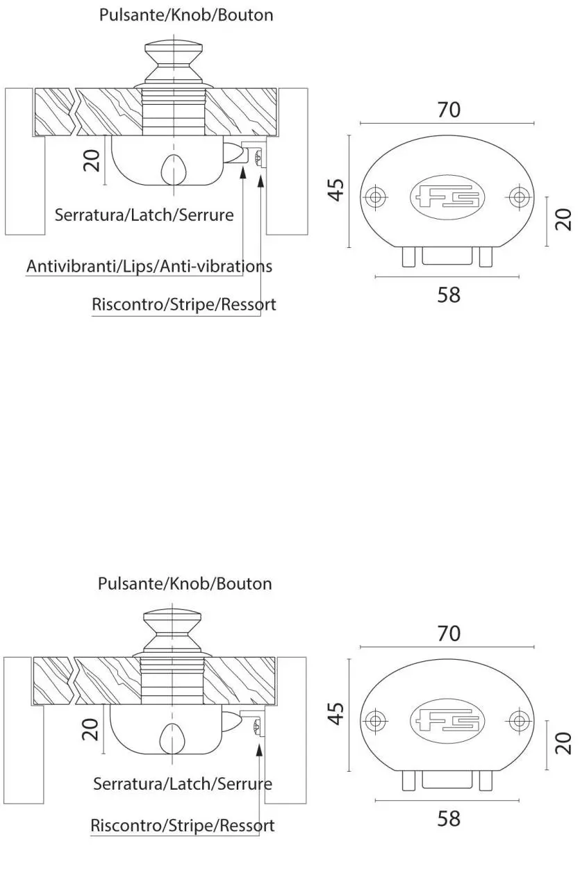 Universal modell; Snapfjærer fjernes enkelt hvis kun trykk lås benyttes.