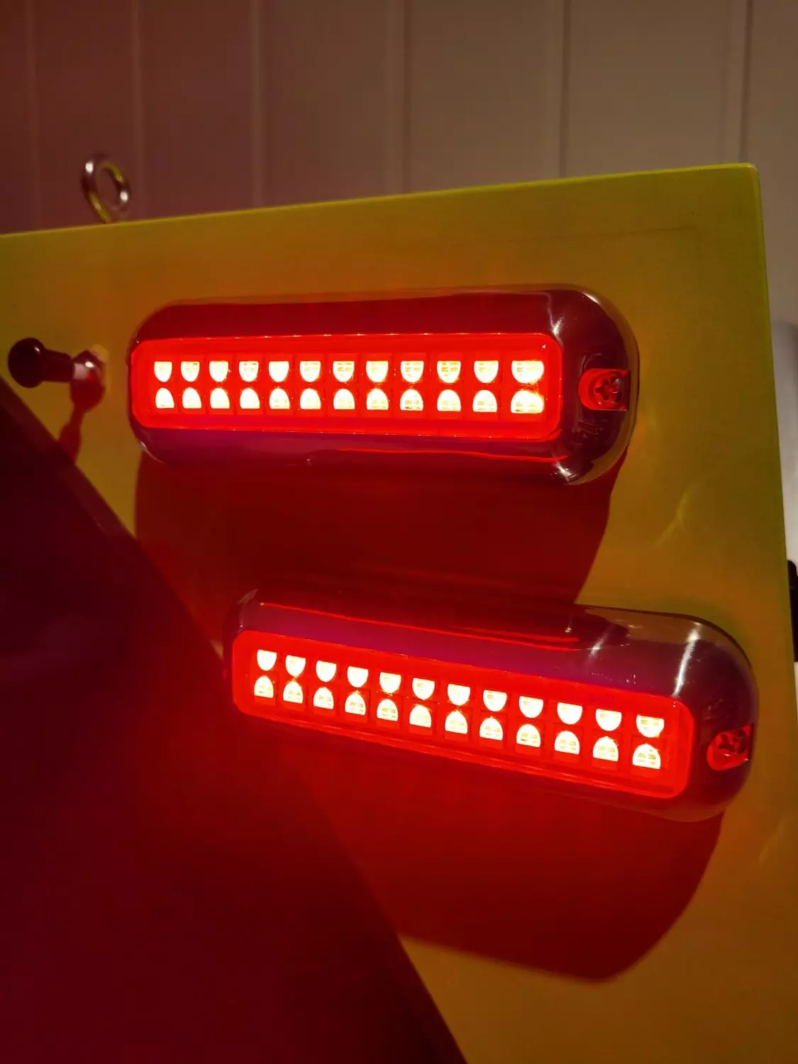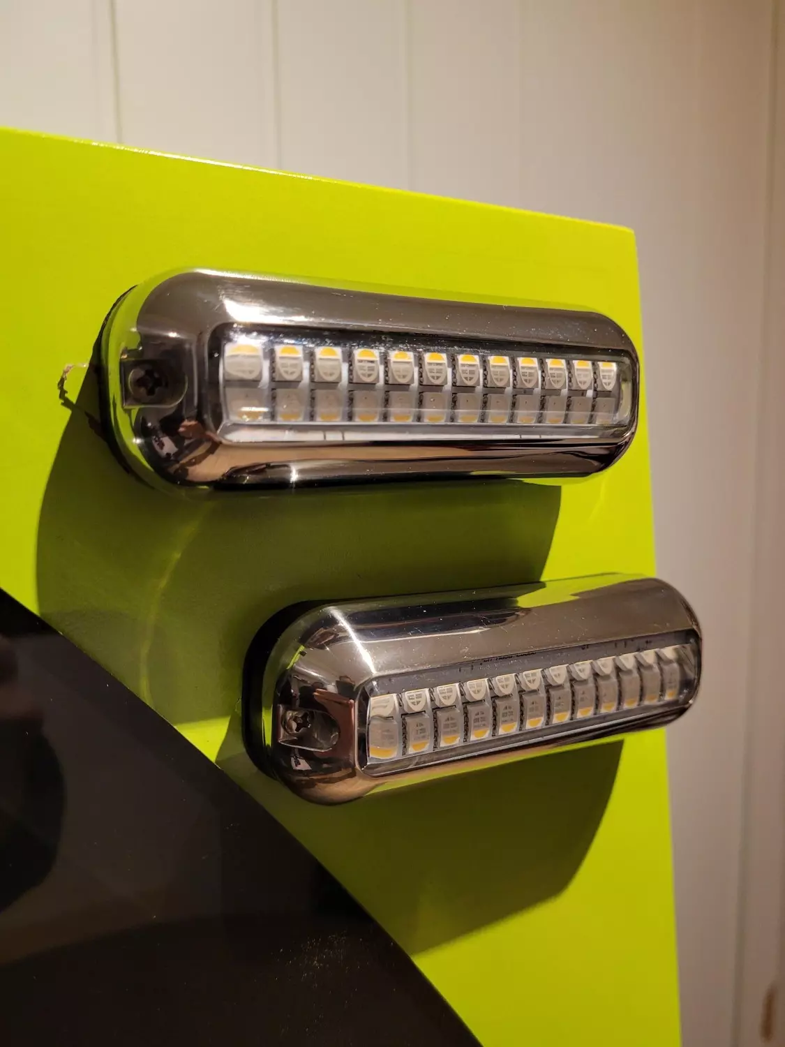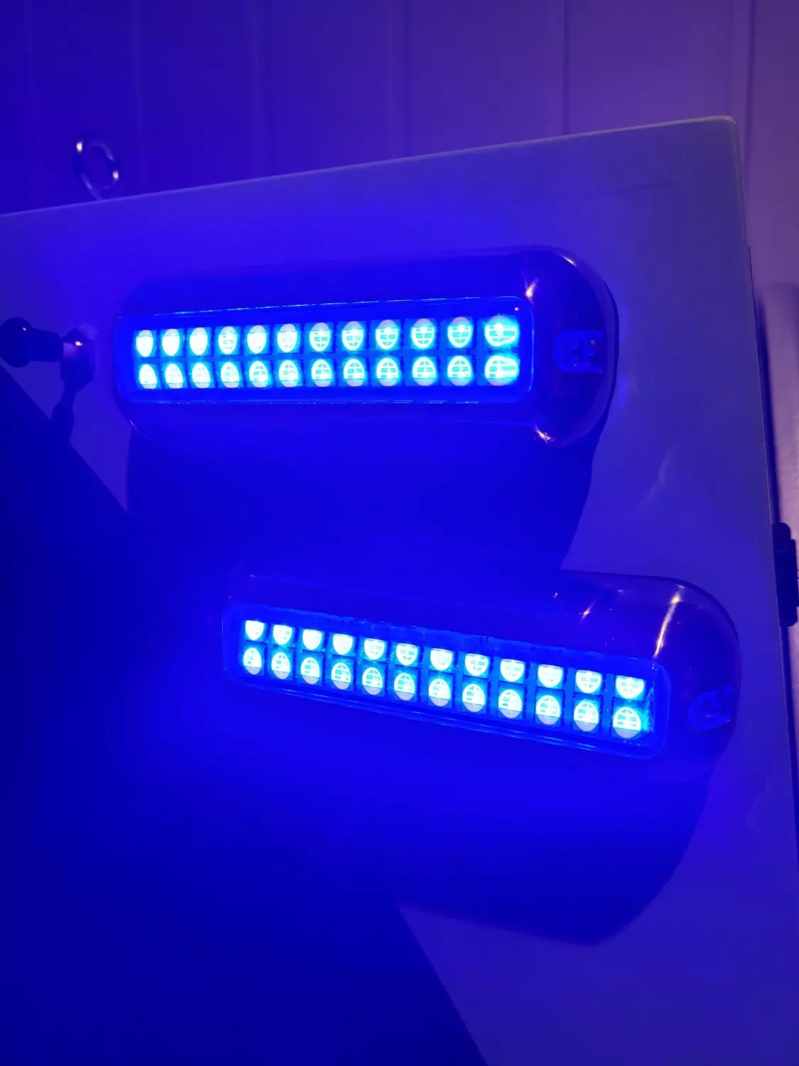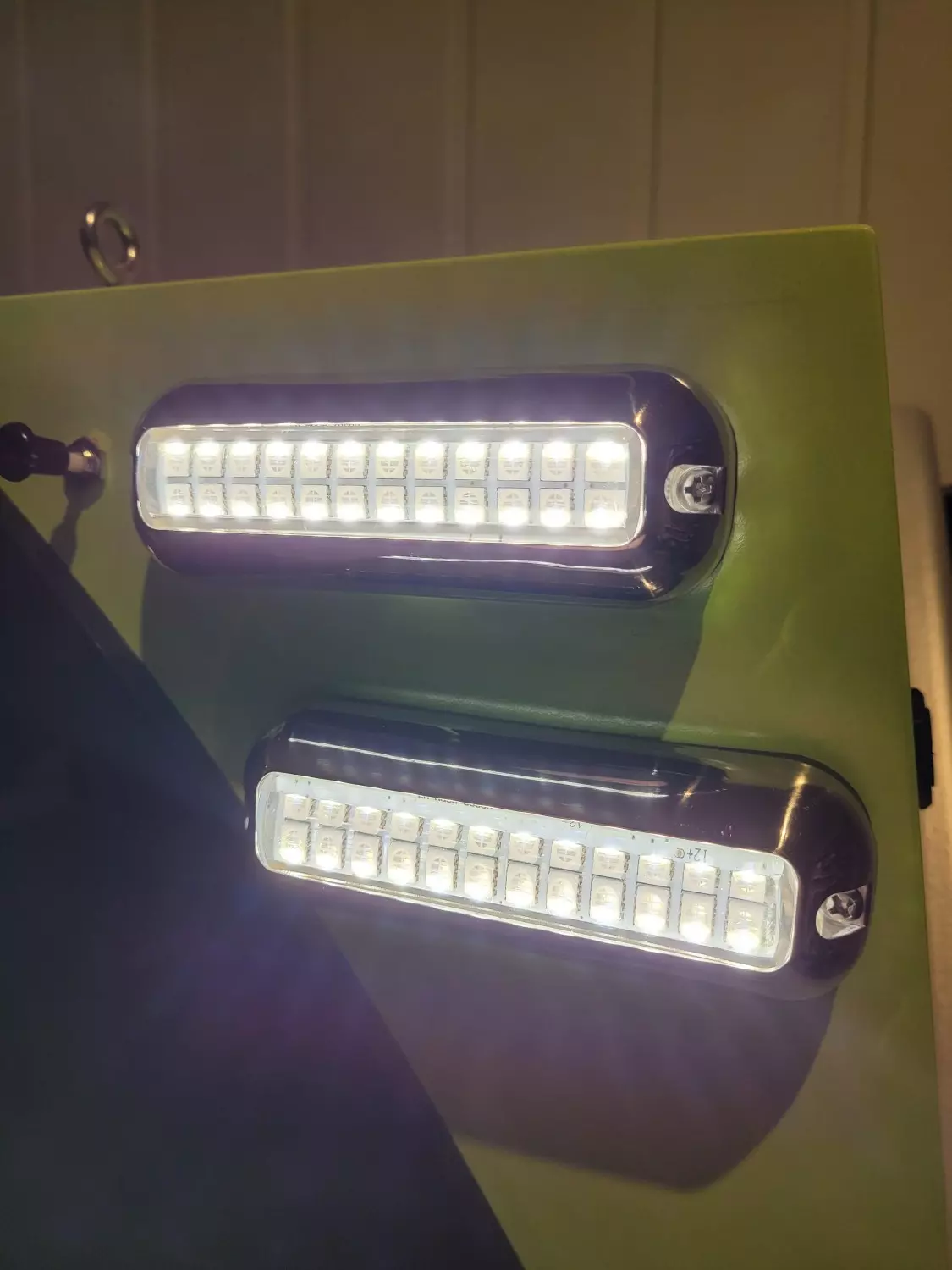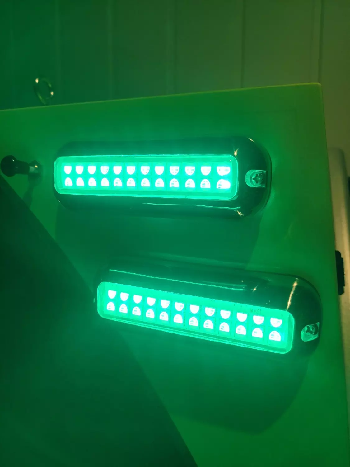 Kraftige led undervannslys, 1 lampe – hele 4 farger. Skifter mellom hvit, blå, rød og grønn ved betjening av bryter. Følger med gummiforhøyer slik at man kan montere lampen utenpåliggende og føre kabel opp langs skrog/evt inn over vannlinje.